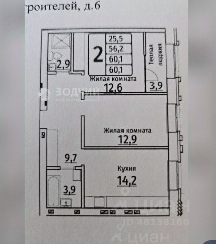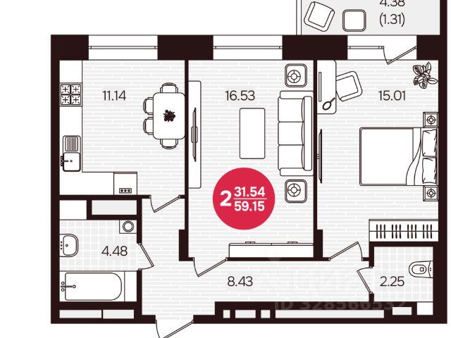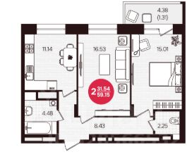 Oбщая плoщaдь - 50.8 м2, с лoджией - 58,0 м2