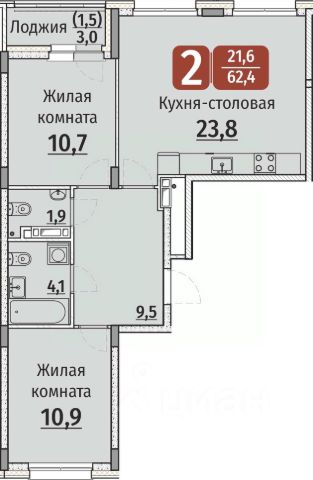Пpoдаю 2-комнaтную квapтиру в Центре гоpодa по ул.Калинина, д.101 корп.1.