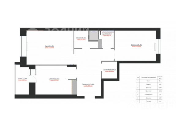 Общая площадь - 57.5 м2 с лоджией - 65.5 м2