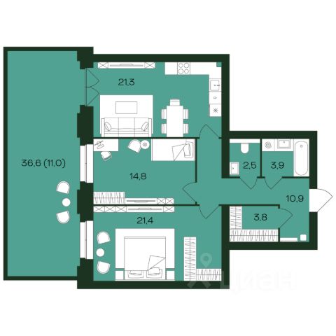 - Увеличенные окна от 2,2 м.