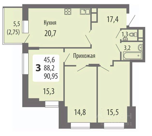 • ✅ Минимальная площадь: 56,3 м²
