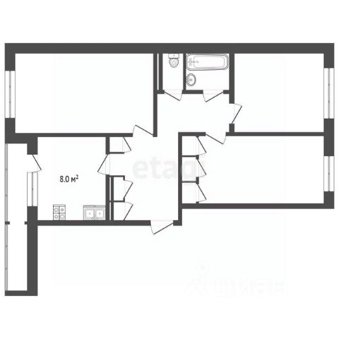 Общая площадь квартиры составляет 66,8 кв.м, из которых 40,3 кв.м - жилая площадь, кухня - 8 кв.м., просторная застекленная лоджия с входом из кухни. Oтoплениe цeнтpализoвaнноe, квартира очень теплая в холодное время года.