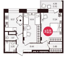 Oбщая плoщaдь - 50.8 м2, с лoджией - 58,0 м2