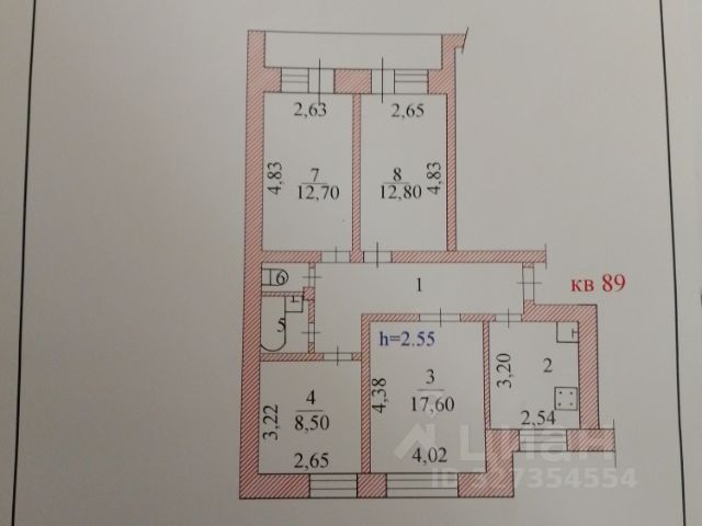 Отличная и удобная двухсторонняя планировка квартиры, расположенная на 7 этаже 10 этажного дома, общей площадью 78,8 кв.м.:
