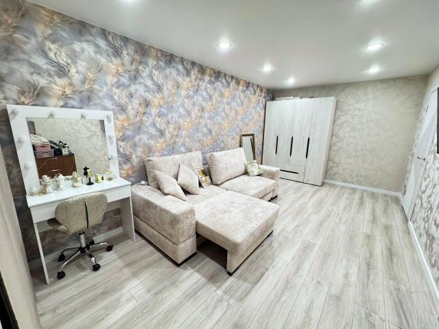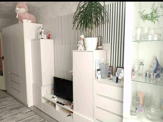 Остаётся часть мебели: спальный гарнитур (двухспальная кровать, комод, шкаф) из дерева (дуб) в отличном состоянии, также шкаф стенка в гостиной из дерева (дуб), кухонный гарнитур, техника (варочная панель, духовой шкаф), кондиционер в зале.
