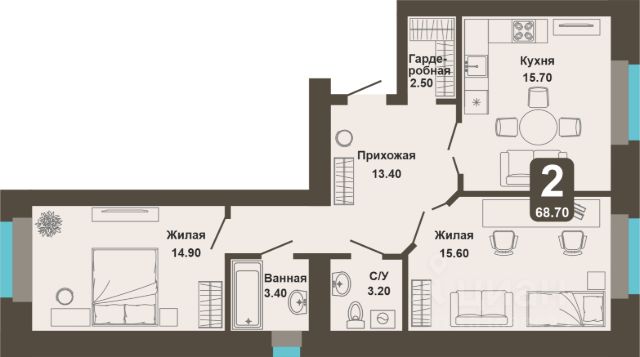 • ✅ Минимальная площадь: 36,8 м²