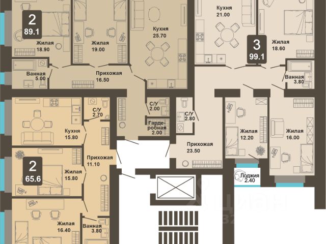 Общая площадь - 45.5 м2, с лоджией - 51.7 м2