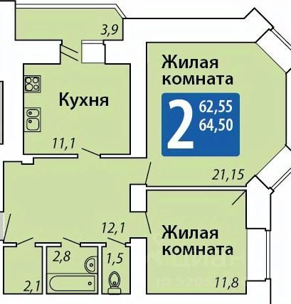 Продаётся 1-комнатная квартира в сданном доме (М.Е. Ефимова, 1 (поз.2)), срок сдачи: IV-кв. 2025, общей площадью 44.2 кв.м., на 2 этаже. Новый жилой комплекс "ПриВолга" от застройщика "Регионжилстрой ГК" расположен по адресу: г. Чебоксары, Гремячевский проезд.