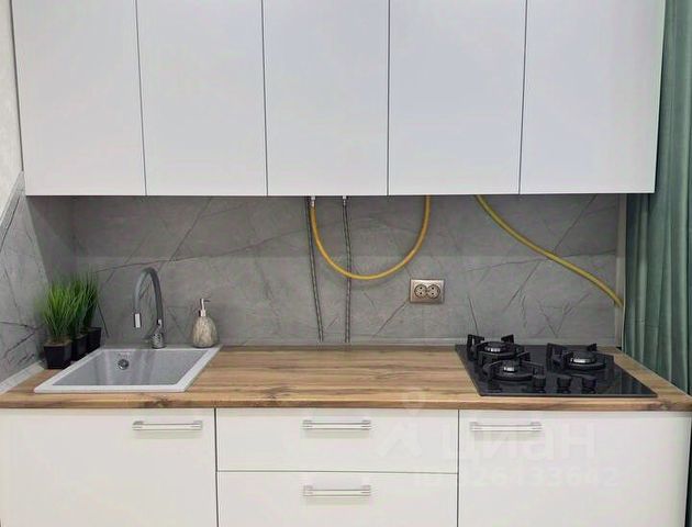 - кухня с плитой, холодильником, микроволновкой, чайником, кухонным гарнитуром,