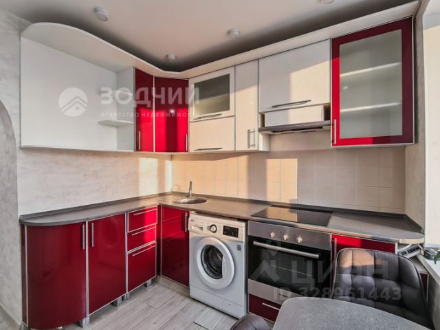 - Просторная кухня-гостиная с современным гарнитуром, всей необходимой техникой (холодильник, плита, духовка, стиральная машина, вытяжка и т.д.) и обеденной зоной у окна.