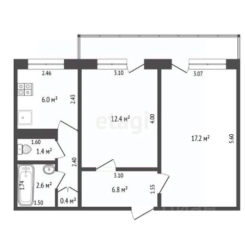 комнаты 17,2 и 12,4 кв.м.