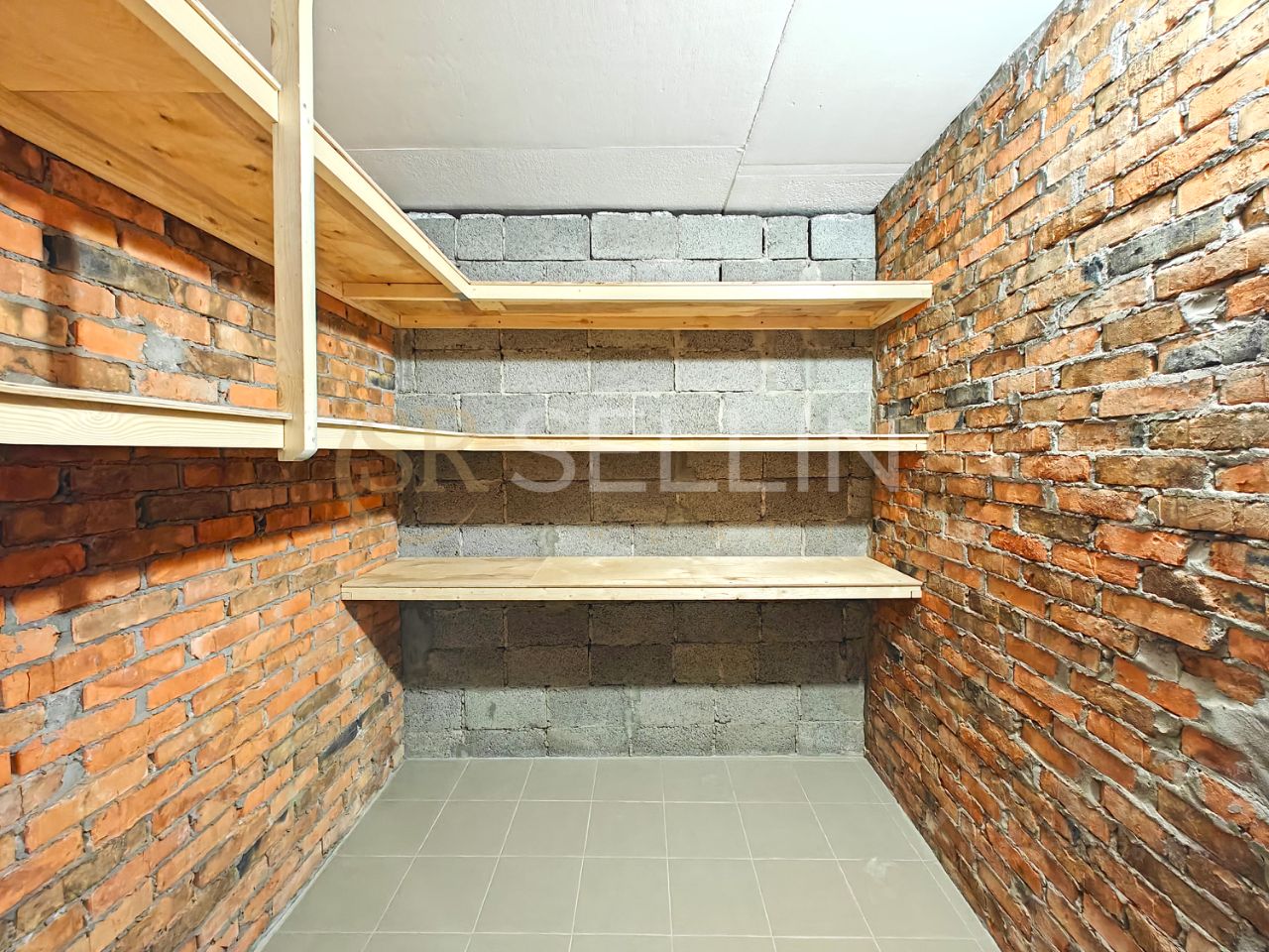 В кладовке надёжные полки (брус - 50х36 мм, фанера - 10 мм), металлическая дверь, свет. В подвале всегда плюсовая температура. Пол выровнен, уложена плитка. Уровень пола выше, чем в коридоре примерно до 5 см. Поэтому ваше имущество останется сухим в непредвиденной ситуации!