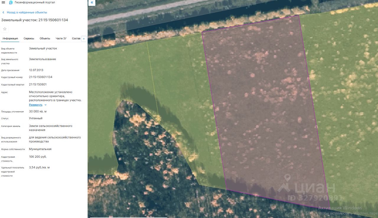 Земельный участок с кадастровым номером 21:15:150601:134 площадь 30000 по адресу Чувашская Республика - Чувашия, р-н Красночетайский, с/пос Хозанкинское