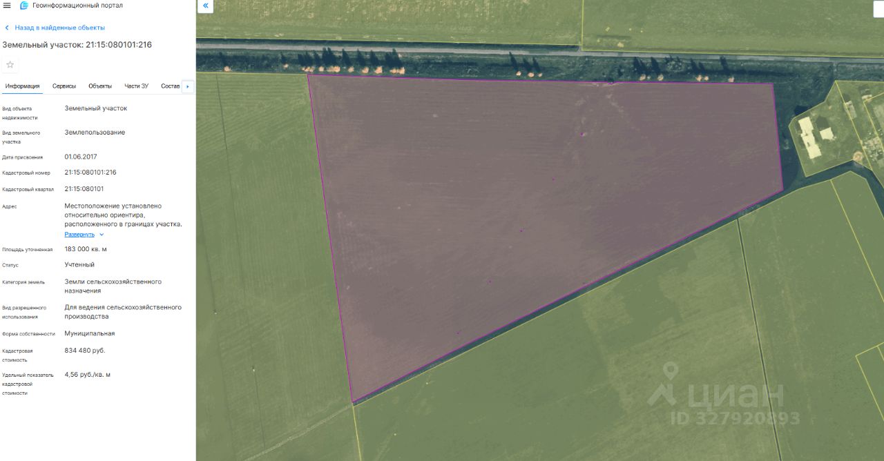 Земельный участок с кадастровым номером 21:15:080101:216 площадь 183000 по адресу Чувашская Республика - Чувашия, р-н Красночетайский, с/пос Акчикасинское