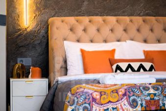 Квартира оформлена в уникальном стиле, с использованием современных материалов премиум качества. Интерьер комнат пропитан атмосферой уюта и комфорта. Зону TV украшают растительные барельефы, а в зоне сна воссоздана фактура настоящей скалы, что придает уникальный и неповторимый шарм.