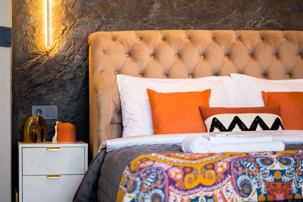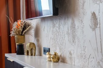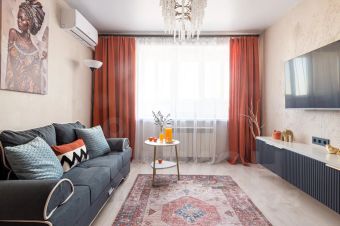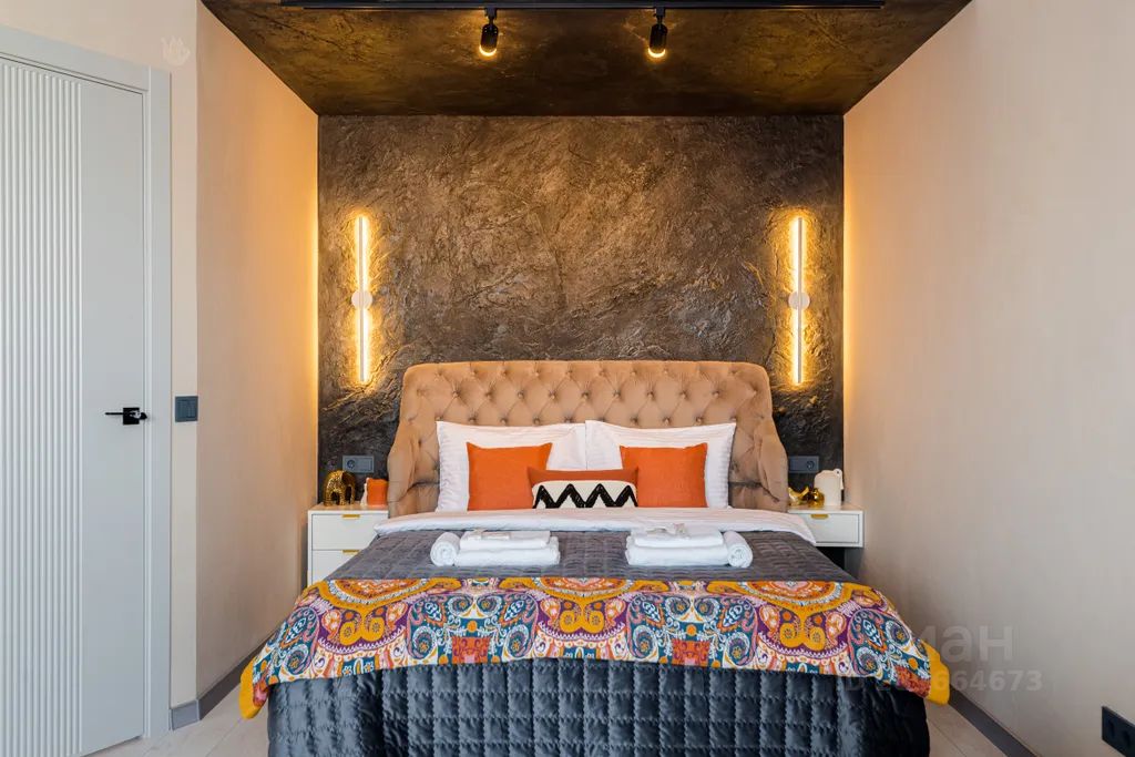 Квартира оформлена в уникальном стиле, с использованием современных материалов премиум качества. Интерьер комнат пропитан атмосферой уюта и комфорта. Зону tv украшают растительные барельефы, а в зоне сна воссоздана фактура настоящей скалы, что придает уникальный и неповторимый шарм.