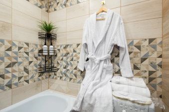 Для вашего комфорта постельное бельё из премиального сатина; белоснежные махровые халаты и комплекты пушистых полотенец; одноразовые тапочки и принадлежности для ванной.