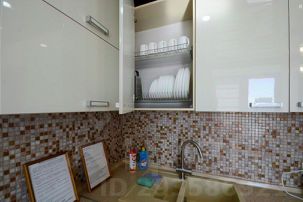 - кухня оснащена всей посудой для длительного, удобного проживания. Кастрюли, сковородки, тарелки, ложки, вилки и прочие необходимые мелочи.