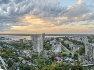 Великолепный панорамный вид на город и реку Волга