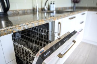 • Полностью оборудованная кухня (холодильник, электрическая варочная панель, духовой шкаф, вытяжка, посудомоечная машина, микроволновая печь, электрический чайник, фильтр для питьевой воды)