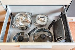 • Посуда, столовые приборы, кастрюли и сковороды