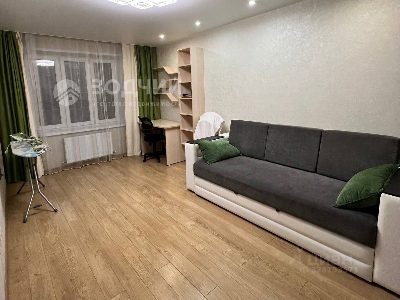 • Гостиная — большая и светлая комната, полностью меблирована, идеально подходит для отдыха и вечеров с семьей, может служить как кабинет.