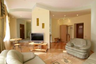 Гранд Люкс - двухкомнатный номер повышенной комфортности, площадью 60 кв. м., оснащенный современной удобной мебелью, двумя санузлами и двуспальной кроватью