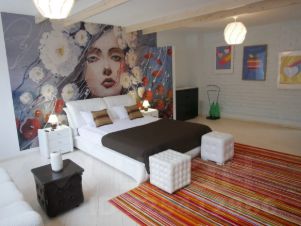 Уникальная особенность номера - элементы эко-стиля в декоре. Номер состоит из прихожей, комнаты отдыха с подвесным столом из натурального дерева и барными стульями, большой спальной комнаты, ванной комнаты с душевой кабиной. Панорамные окна номера выходят на зеленую территорию санатория.