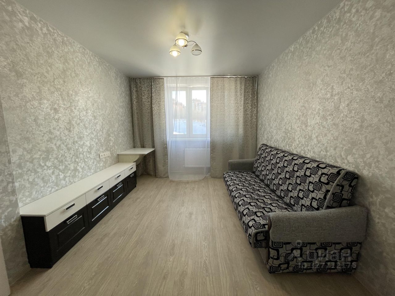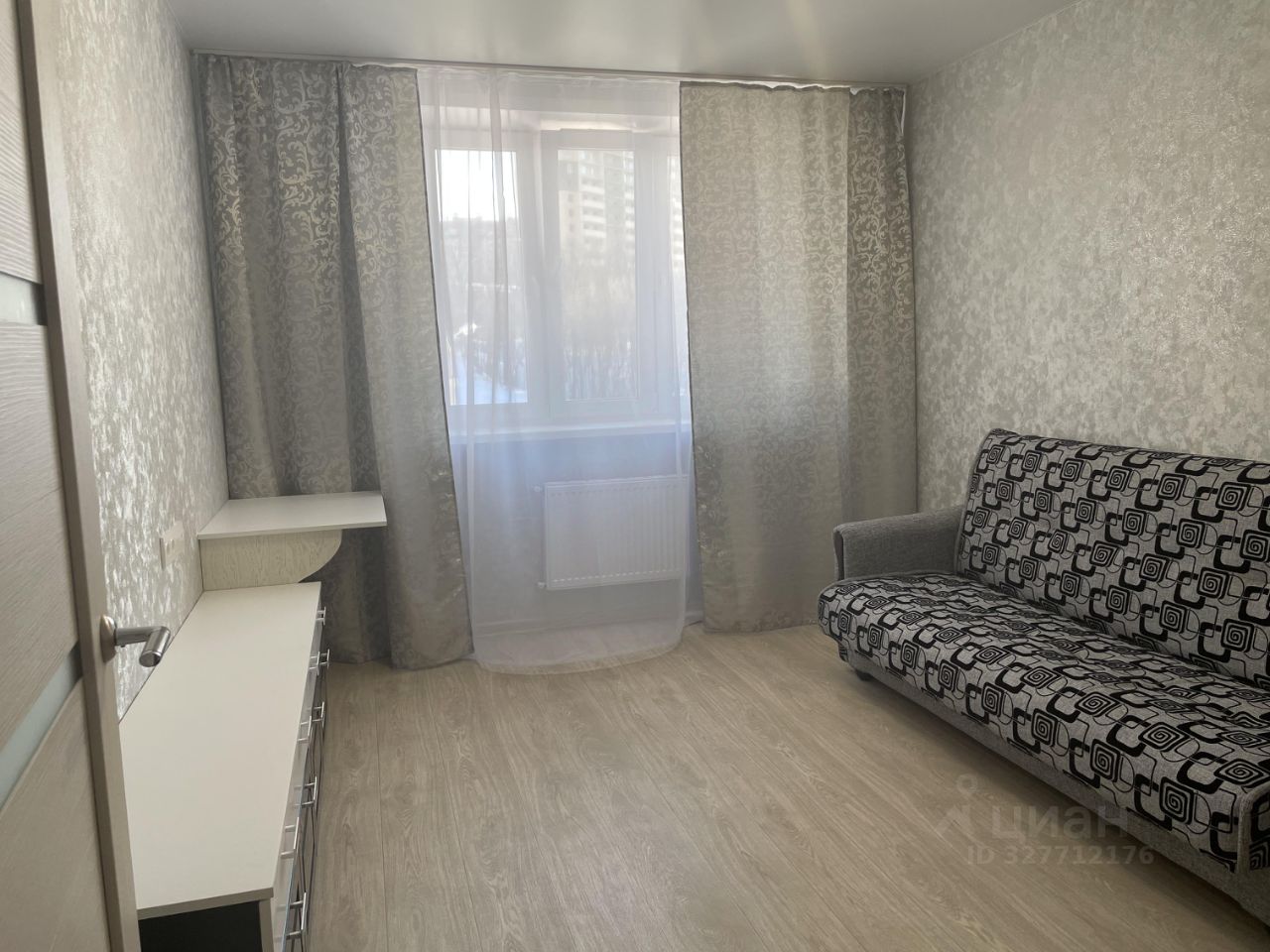 S общая=35 м2. Кухня: 10 м2, комната 15 м2, гардеробная; Лоджия из кухни застекленная. Санузел совмещенный.