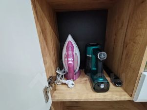 Так же есть: микроволновая печь, индукционная плита, духовой шкаф, вытяжка, электрочайник, гладильная доска с утюгом.
