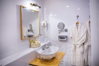 Ванная комната: фен, банные халаты и тапочки, набор косметических принадлежностей, биде.