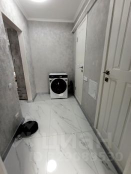 Есть все необходимое для проживания: кухонный гарнитур, шкафы, диван, кровать, холодильник, стиральная машина, робот-пылесос, СВЧ-печь, чайник.