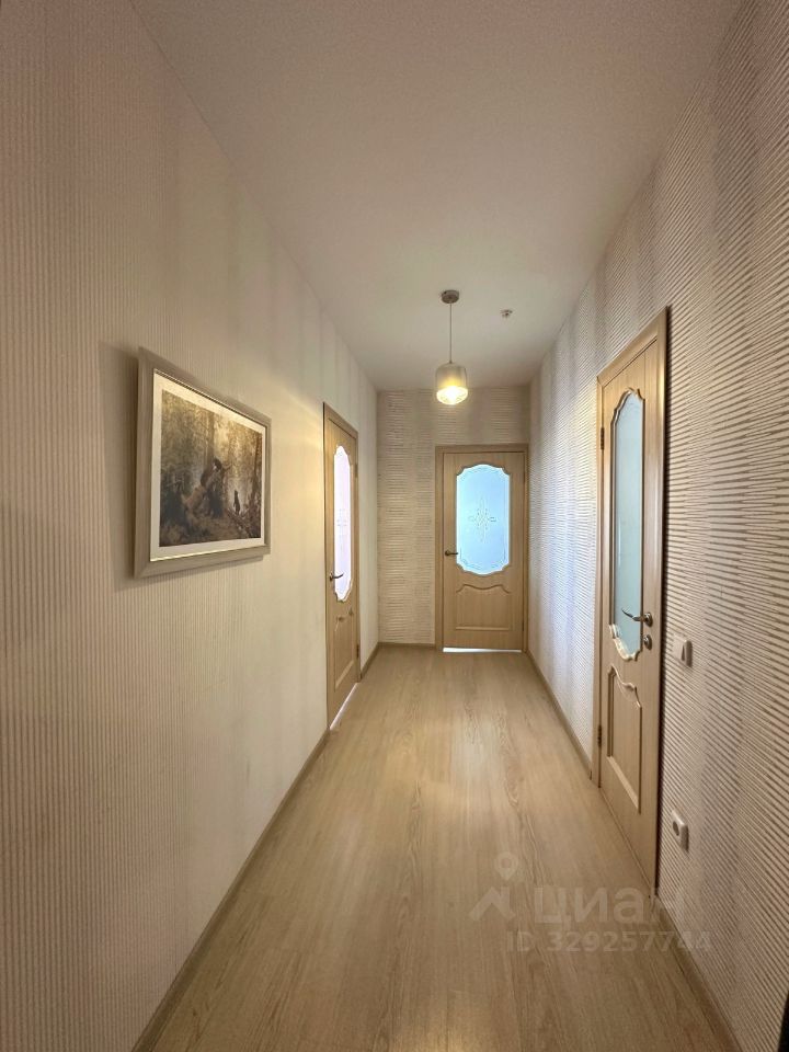В квартире ремонт в светлых тонах. Высокие потолки.