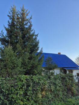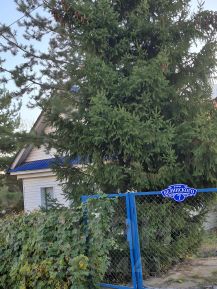 Зона мангала у дома под открытым небом , под шикарной сосной.