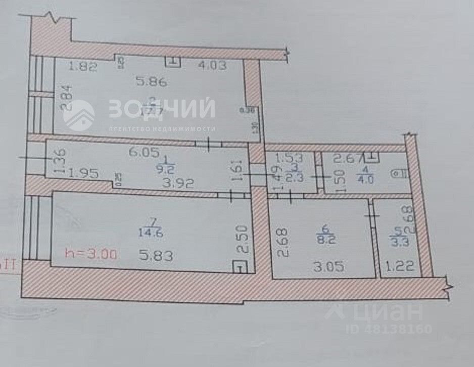 высокие потолки 3 м.