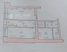 Продается 3/4 доли помещения (44.5 кв.м), общая площадь помещения 59.3 кв.м., т.е. второму собственнику принадлежит всего 14.8 кв.м.