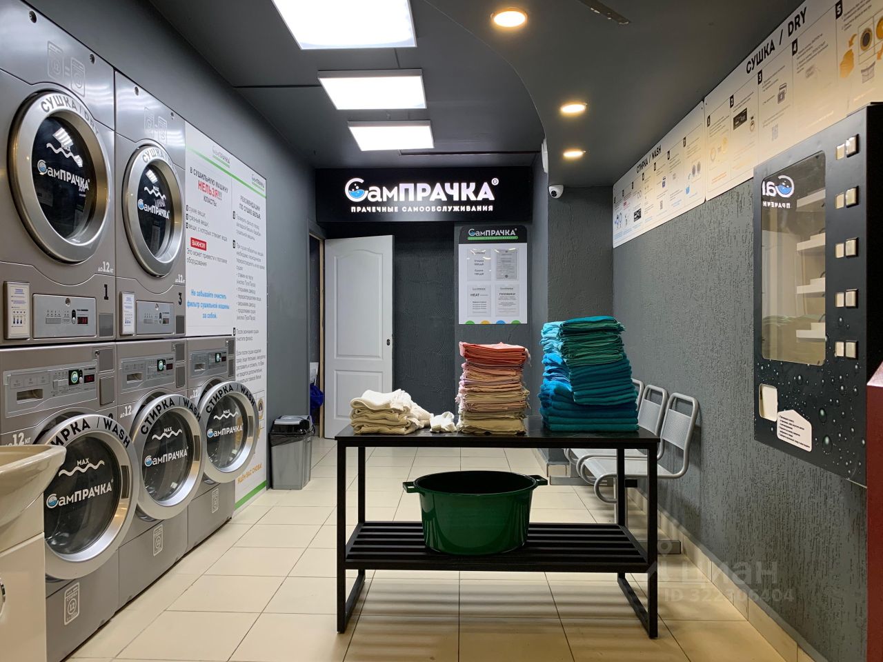 Оборудование: стиральные машины 12 кг/100 л 3 шт., сушильные машины 2 шт., платежный терминал, система онлайн-мониторинга.