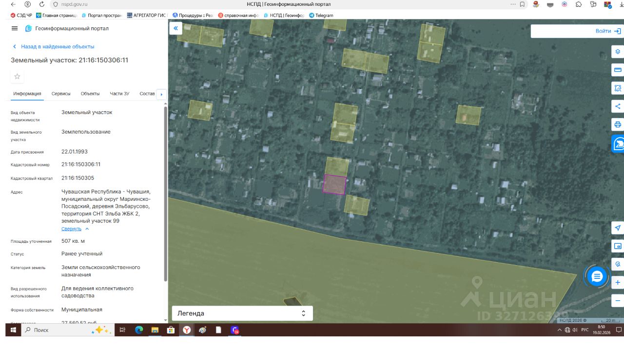 Земельный участок с кадастровым номером 21:16:150306:11, категория земель: земли сельскохозяйственного назначения, вид разрешенного использования: для ведения коллективного садоводства, общая площадь 500 кв.м. (0,05 га), расположенный по адресу: Чувашская Республика, Мариинско-Посадский муниципальный округ, садоводческое товарищество "Эльба" ЖБК-2, участок 99