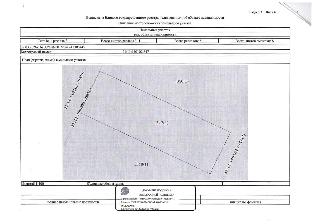 земельный участок, площадью 1041 кв.м., с кадастровым номером 21:11:140102:347, расположенного по адресу: Чувашская Республика - Чувашия, Канашский муниципальный округ, д. Большие Бикшихи