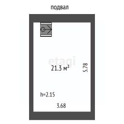 Планировка продумана до деталей. На первом этаже (21,3 м², высота 2,63 м) — деревянный пол и отделка евровагонкой. Отсюда ведёт лестница в сухой подвал (21,3 м², высота 2,15 м) с бетонным полом и на второй этаж (21,1 м², высота 2,06 м), также обшитый вагонкой и с двумя окнами.