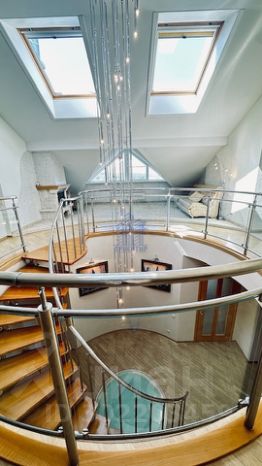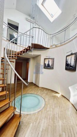При входе в квартиру складывается впечатление, что вы попадаете в большой загородный дом. Входя в просторную прихожую, справа остается гардеробная, а с левой стороны попадаете в большую кухню-столовую площадью 27 кв. м, оборудованную вместительным кухонным гарнитуром с встроенной техникой. Также кухня оборудована лифтом для прямой подачи блюд в гостевую столовую, расположенную над кухней. Прямо по направлению из прихожей вы попадаете в холл , где расположена красивая винтовая лестница, ведущая на второй ярус квартиры. По левую и правую стороны холла находятся две просторные спальные комнаты по 30 кв. м., далее две вентилируемые гардеробные с большим настенным зеркалом, прачечная и большая ванная комнатой с выходом на лоджию. Поднимаясь вверх по лестнице вы попадаете в большую гостиную 70 кв.м., оборудованную камином и аквариумом. Также на втором этаже расположены гостевая столовая, кабинет, спальная комната, санузел и котельная. Панорамные окна обеспечивают естественное дневное освещение и позволят любоваться проплывающими облаками. С верхнего этажа открывается потрясающий вид на реку Волгу, где можно любоваться невероятно красивыми закатами, слушая в тишине потрескивание дров в камине!
