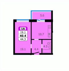 Продаётся 1-комнатная квартира в строящемся доме (поз.2 блок-секции А,Б), срок сдачи: II-кв. 2026, общей площадью 44.3 кв.м., на 10 этаже.