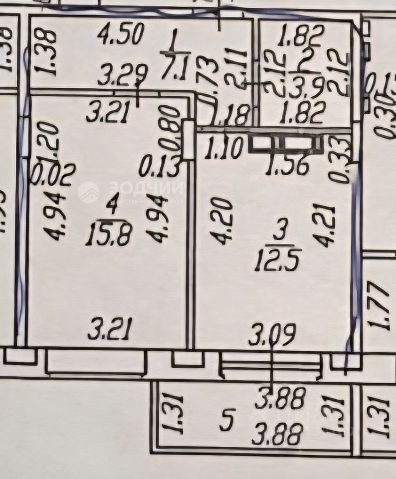 просторная кухня-12,5 кв.м, жилая комната 15,8 кв.м,