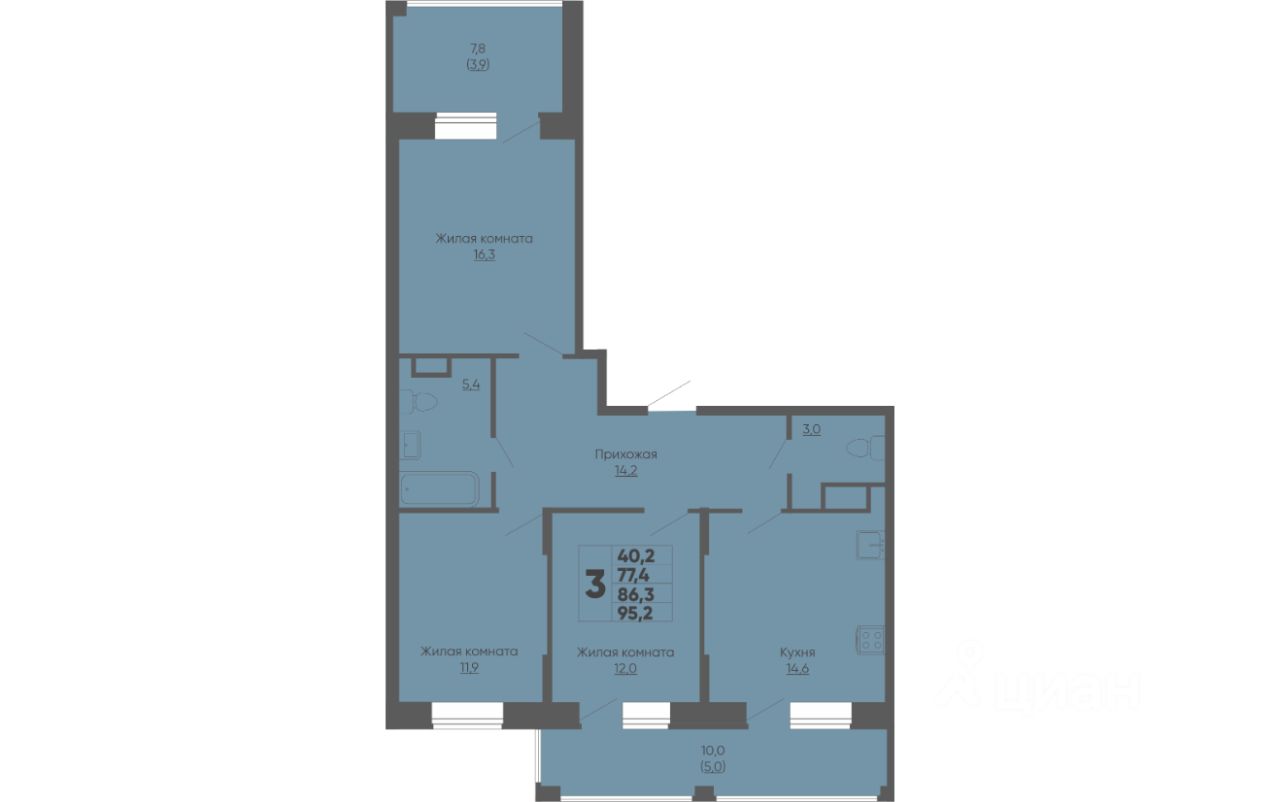 86,3 м²
