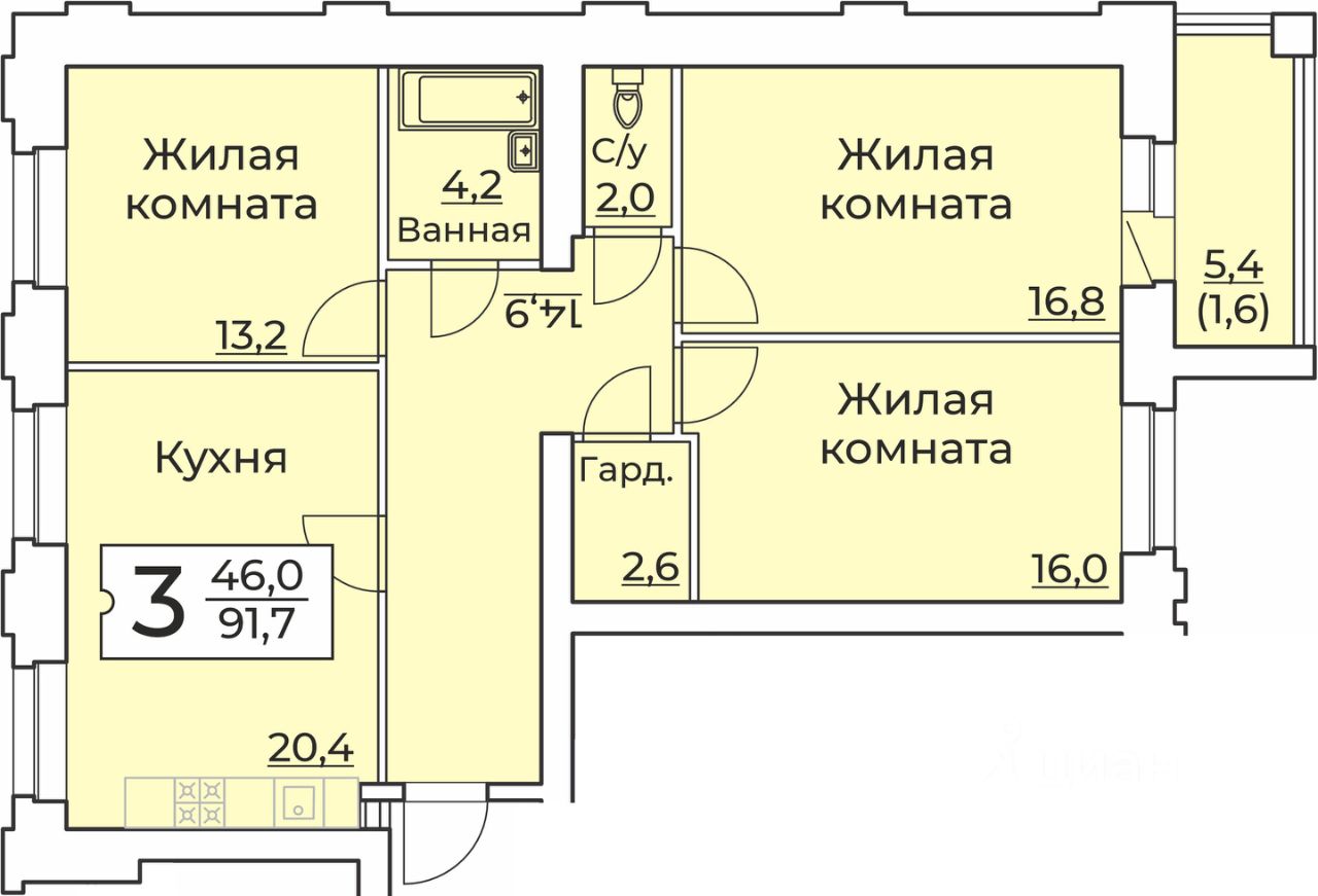 Тип отделки квартир: Черновая