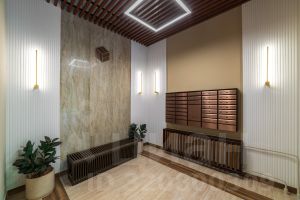 Также, для комфортного и удобного проживания здесь, предусмотрены входные металлические двери; сквозные подъезды; индивидуальные кладовые в подъездах и подвале дома; дизайнерская отделка мест общего пользования; колясочные на первых этажах каждого подъезда; закрытый (огороженный) современный двор-парк; на территории комплекса 17 видеокамер; авторский ландшафтный дизайн придомовой территории.