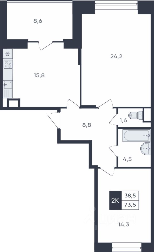 Продаётся 2-комнатная квартира в строящемся доме (поз. 11), срок сдачи: I-кв. 2027, общей площадью 73.5 кв.м., на 2 этаже. Жилой комплекс "Университетский-2" представляет собой группу кирпичных зданий переменной этажности 10-17 этажей.