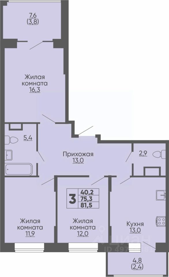 Продаётся 3-комнатная квартира в строящемся доме (поз. 11), срок сдачи: I-кв. 2027, общей площадью 81.5 кв.м., на 8 этаже. Жилой комплекс "Университетский-2" представляет собой группу кирпичных зданий переменной этажности 10-17 этажей.