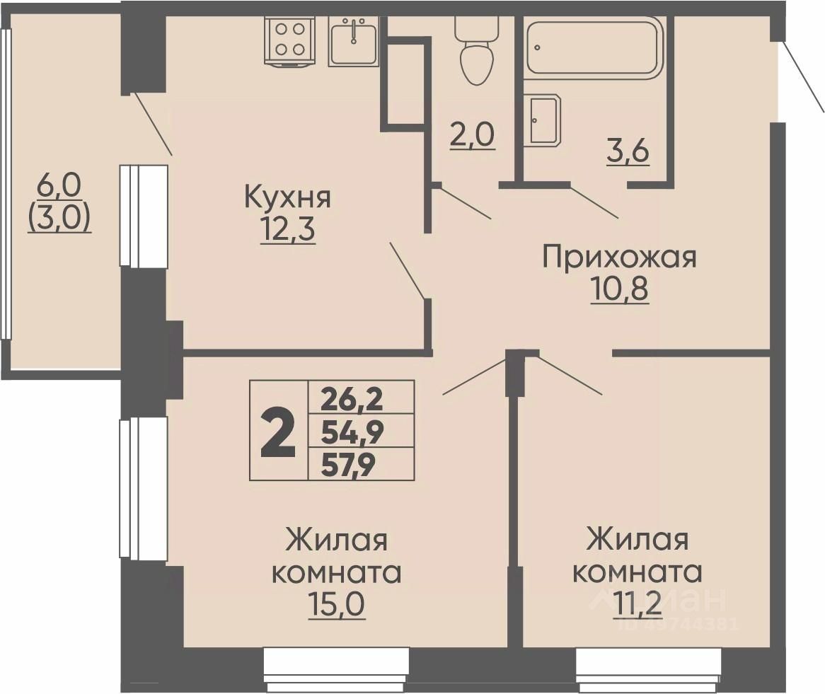 Продаётся 2-комнатная квартира в строящемся доме (поз. 11), срок сдачи: I-кв. 2027, общей площадью 57.9 кв.м., на 10 этаже. Жилой комплекс "Университетский-2" представляет собой группу кирпичных зданий переменной этажности 10-17 этажей.