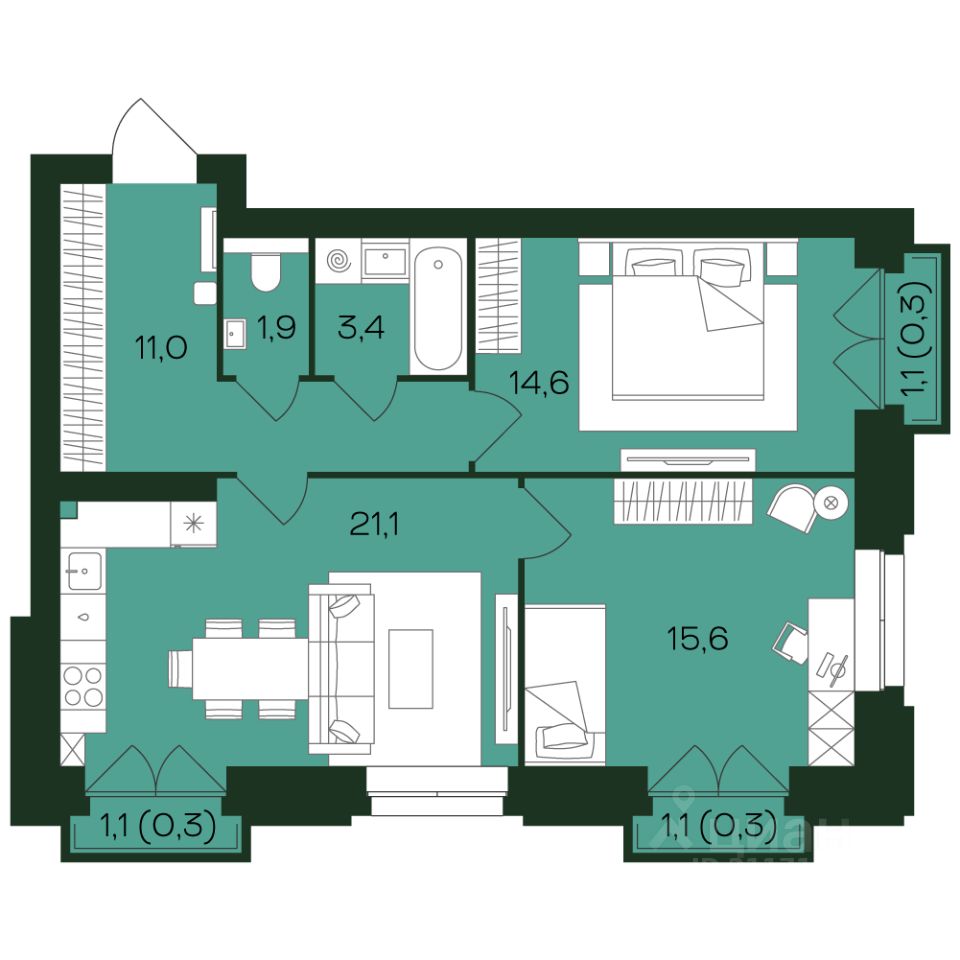 21,1 м²